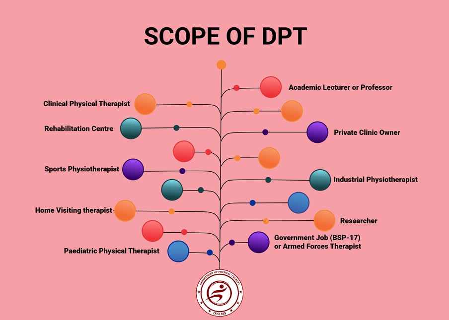 The Doctor of Physical Therapy (DPT) is a five-year (10-semester) professional degree approved by the Higher Education Commission of Pakistan (HEC). It prepares students to become competent healthcare professionals who can assess, diagnose, and manage movement disorders caused by injury, illness, or disability. The curriculum blends foundational sciences such as anatomy, physiology, and pathology with clinical and behavioral sciences. Emphasis is placed on developing strong decision-making, critical thinking, and hands-on treatment skills through methods like manual therapy, therapeutic exercises, and electrotherapy techniques. Obaid Noor Institute of Medical Sciences (ONIMS), established in 2021, is a pioneer in offering the DPT program in Mianwali. The institute provides a modern and well-equipped learning environment supported by experienced faculty and clinical instructors. Students gain practical experience through real patient interactions at the on-campus Physiotherapy & Rehabilitation Center, which also provides free services to the local community. With a focus on academic excellence and professional development, ONIMS offers students the opportunity to build a rewarding career in physical therapy and contribute meaningfully to the healthcare sector.